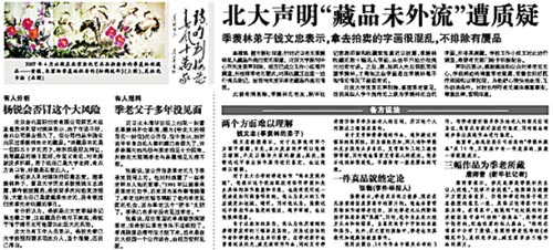10月底,收藏愛好者張衡向媒體報料,稱季羨林私人藏品流入拍賣市場。11月5日,北大發(fā)出官方聲明稱尚未發(fā)現(xiàn)季老藏品外流的情況。