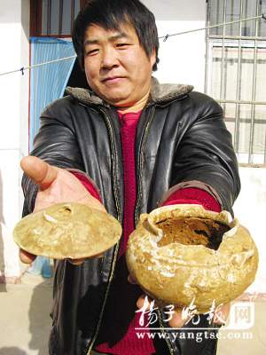 在發(fā)掘中,考古人員發(fā)現(xiàn)了4個盜洞?脊湃藛T向記者描述,這4個盜洞中,其中有兩個在墓道上方,由于下面有著25層填土石,最長的達(dá)10米,估計盜墓賊無從下手,只好放棄了。而后方的墓室頂部就沒能幸免,盜墓賊從墓室頂部又打了兩個盜洞,這里是土層封頂,為盜墓賊提供了方便。在盜洞里,考古人員發(fā)現(xiàn)盜墓賊留下的瓷片,“從瓷片來判斷,是宋代的。瓷片型制表明是生活用品,可能是盜墓賊當(dāng)年使用的油燈!彪y道是一座宋代古墓?不可能?脊湃藛T憑經(jīng)驗認(rèn)為,下面一定葬有更早期的墓葬。隨著盜洞周圍的探挖不斷進(jìn)展,考古人員發(fā)現(xiàn),古墓中不斷出現(xiàn)散落的青磚,這是為什么?難道古墓完全被盜過了?挖掘到底部時,令考古人員十分痛惜,這處古墓葬的墓室部分遭到嚴(yán)重破損,墓壁四周的青磚基本被推倒,只留下了不到20厘米高的幾層墓壁,沒有發(fā)現(xiàn)棺釘和大量文物。專家分析,可能是該墓室被遷移,而非盜墓者所為。