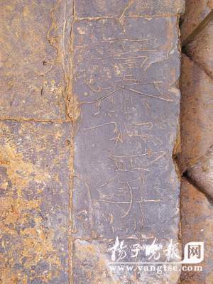 順著盜洞,考古人員發(fā)現(xiàn)這個古墓非同一般,這座古墓本身不算大,但墓葬位置很深,從地表到墓室底部達(dá)8米。長有30多米,寬達(dá)13米,考古人員因此開挖了一個很長的通道,順著通道,記者走了下去。岳涌指著地上僅留的幾層墓壁磚說:“你們看,這塊磚極其獨(dú)特,這是我們在東晉墓葬考古中的首次發(fā)現(xiàn)!庇浾邷惤豢矗@塊不一樣的青磚上有“晉泰和四年秋”字樣,但不同的是磚文不是鑄磚時刻上去的,而是手書,字跡書寫十分流暢,完全像是書法家的字?脊艑<页醪秸J(rèn)為,這可能是鑄磚的工匠所為。而墓門的青磚上有許多銘文,記者發(fā)現(xiàn)剛剛清洗過的一塊青磚上刻著“晉泰和四年秋毛氏”字樣,字體比較圓潤。岳涌告訴記者,一共發(fā)現(xiàn)了20多塊有字的青磚,而手寫的磚只有這一塊,非常珍貴。磚文記載的十分清楚,古墓葬為東晉泰和四年。