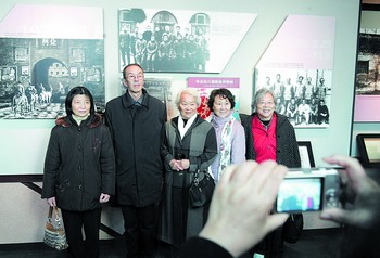 老人們不時(shí)拿出手中的相機(jī)在先輩們的照片前合影。突然一張?jiān)谘影才牡暮嫌拔舜蠹业哪抗,老人們(cè)谡掌蠈ふ抑约焊篙叺纳碛,并興奮地在老照片前合影留念!斑@是我伯父,大家過(guò)來(lái)合張影吧。”周恩來(lái)的侄女周秉德叫上劉少奇的女兒劉愛(ài)琴等人一起,“咔嚓”一聲留下了美好瞬間。隨后,在一張劉少奇與兒女們的合影中,劉愛(ài)琴一眼就認(rèn)出了當(dāng)年還是小姑娘的自己以及弟弟妹妹,幸福溢于言表。