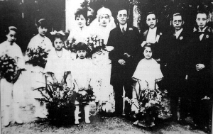 1923年,聶其璧(右五)、周仁(右四)結(jié)婚照,宋美齡(右六)當(dāng)儐相