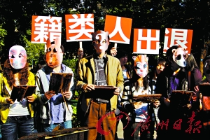 昨日下午2時30分許,行為藝術(shù)家流野、黎永泰等帶領40余人在廣州人民公園舉行儀式,宣布“退出人類籍”,并表演了“退人類操”。他們還選出10個退出人類后甘愿進化為動物的先進分子進行了宣誓。誓詞的大意為:我甘愿退出人類籍,順應天理,遵守大自然的規(guī)律與公道,執(zhí)行造化的暗示,正義地反對人類為所欲為的戰(zhàn)爭、掠奪與虛偽,為宇宙、自然界的真正和諧解放而奮斗終身!此舉引來數(shù)百人聚集圍觀,公園方面如臨大敵,派出保安現(xiàn)場維持秩序。儀式結(jié)束后,40余個宣稱已經(jīng)是動物不是人類的行為藝術(shù)家,還舉著“退出人類籍”牌步行15分鐘,到附近菜市場慰問了待宰的動物,表示慰問和默哀。