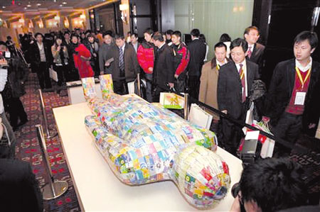 當代藝術家刁建中用上千張塑料卡片仿制成一件類似“金縷玉衣”的裝置藝術,于19日在一場關于“金融危機下中國經濟的機遇與挑戰(zhàn)”的論壇上公開展示,成為眼下藝術圈的熱門話題。由于隱喻性很強,這件用當代觀念復制出的“出土文物”喧賓奪主,成為那場論壇的最熱烈討論話題。此外,新媒體藝術家金江波的作品《經濟大撤退》由于提前半年預見了金融危機對沿海企業(yè)的災難性影響,甚至英國BBC都要找他請教創(chuàng)作心得。在這次金融風暴面前,中國藝術家終于首次拿經濟問題作為創(chuàng)作靈感。