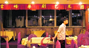 “文革”后,白云峰又操起了唱戲的老行當(dāng)。12年前,白云峰放棄了國營劇院的鐵飯碗,領(lǐng)著一班樂師和演員,組建了云峰粵劇藝術(shù)團!皯虬唷钡闹饕枧_,除了到鄉(xiāng)下慰老臨時搭臺,便是城里的茶樓飯館。白云峰操辦“戲班”盡心盡力,集劇團的老板、師傅、編劇、導(dǎo)演于一身。