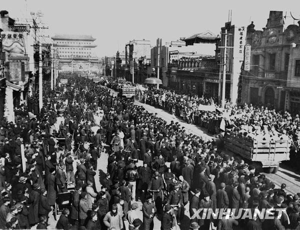 趙化他們碰到了來歡迎解放軍的戴愛蓮,解放軍接管北平時有攝影師跟蹤這一事實,無意間被戴愛蓮的舞蹈所佐證: