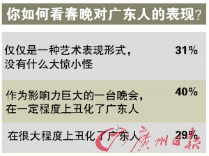 在“你認(rèn)為央視春晚貶低了廣東人形象嗎?”的調(diào)查中,投票者中超過五成認(rèn)為:“是。”