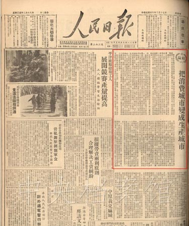 2. 1949年3月17日《人民日報(bào)》社論:把消費(fèi)城市變成生產(chǎn)城市