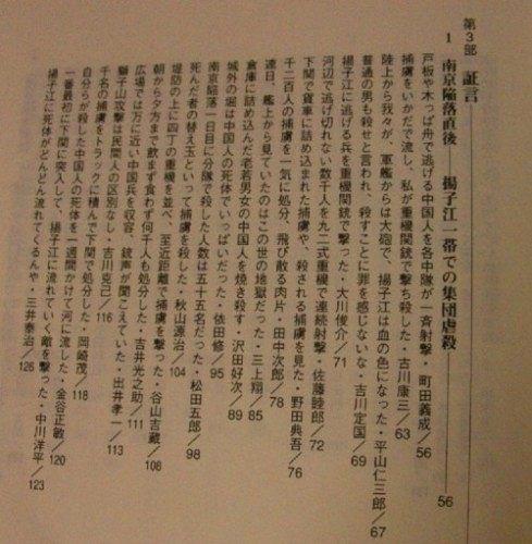 在下關(guān)刑場附近,從城中開來滿載中國人的敞篷卡車絡(luò)繹不絕,停在倉庫中間。作為海軍軍官的奧宮認(rèn)出這支部隊(duì)屬于第九師團(tuán)第三十六聯(lián)隊(duì),他走進(jìn)碼頭的倉庫群,看到兩手被綁在背后的十幾個(gè)中國人,被一個(gè)個(gè)拉到江岸邊幾米的地方,用軍刀和刺刀慘殺后,投入揚(yáng)子江中。江中只見層層疊疊的尸體,靠近岸邊的江水為之阻塞,以肉眼幾乎難看出的速度裹挾著尸體艱難流向下游。但,有些人還沒有徹底死透,掙扎著向岸邊淺灣處逃生,那附近已經(jīng)是一片血海,因?yàn)槟抢锏却麄兊模窃缬袦?zhǔn)備的槍擊和刺刀。整個(gè)過程如同流水線一樣秩序井然,連大聲指揮的人都沒有。看來,明顯是根據(jù)上級(jí)的命令在進(jìn)行。我向刑場入口的一個(gè)下士問道:"這么多中國人,就這樣安安靜靜被帶來,你們是怎么做到的?"回答是:"城內(nèi),對著在廢墟上收拾的中國人問:'有肚子餓的舉手',然后把舉手的裝上卡車作出帶去吃飯的樣子,就完成了唄。""那么,為什么用日本刀和刺刀行刑呢?""長官說,為了節(jié)省子彈。"