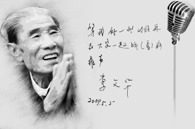 僅僅4天前,李文華通過前去探病的中國曲藝家協(xié)會的唐杰忠、蔡興林、常祥霖、陳連生4位朋友,將一幅病榻上的照片和兩張題字送給關心他的廣大觀眾。