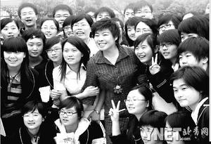 東汽中學(xué)的高三年級受災(zāi)特別重,高三五班43個孩子就剩下18個了。于丹說她見到那十幾個孩子的時(shí)候,他們打打鬧鬧、嘻嘻哈哈,特別高興的樣子。等他們坐下來聊天時(shí),聊著聊著,有一個叫唐雯的小女孩,悄悄地跟旁邊的人說了什么,旁邊的人便替她說出來:“她說她想抱抱你!庇诘けё×伺。唐雯很安靜的把頭伏在她的右肩上,過了一會兒就開始聲音低低地啜泣。于丹輕輕拍著她說:“好孩子,你可要把眼淚流出來,這要是窩在心里就是堰塞湖,如果你不通開它哪兒行啊,你哭出來就好了!彼蛷泥ㄆ、顫抖,到嗚咽,然后聲音越來越大。于丹說她感到自己的衣服從肩膀一直濕到手臂:“她哭了好久!”后來,唐雯才慢慢地跟她說起去年自己從教室里被挖出來,到處找不到同學(xué)的心慌,說自己不能接受這個現(xiàn)實(shí)!昂髞砦也乓庾R到,雖然很多孩子看起來有說有笑的,但是這一幕在她的心里,要過去太難了!”