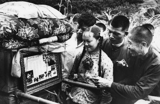 徐永輝向我們展示的厚厚資料照片,第一張就是1950年第一次拿起相機(jī)拍攝的照片。當(dāng)時(shí),第一次下鄉(xiāng)的徐永輝,循著“解放區(qū)的天是睛朗的天”的歌聲,找到了嘉興農(nóng)民葉根土的家,為他們?nèi)遗南铝艘粡堃律酪h褸的全家福。從這一天起,他就開始了對(duì)葉根土一家堅(jiān)持不懈的追蹤拍攝。3年后,葉家大女兒結(jié)婚,特地請(qǐng)徐永輝當(dāng)嘉賓,徐永輝送上的賀禮是新舊兩張“全家!保桓磷鳛閭骷覍氋(zèng)給女兒當(dāng)“嫁妝”。