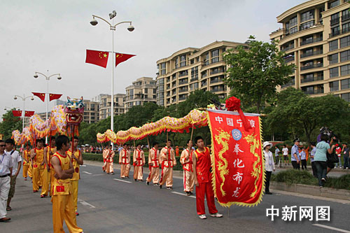 在浙江各地市的“獻禮”中,杭州獻上了具有地方特色的《余杭滾燈》、《五鳳朝陽》等節(jié)目。以“龍騰浙江”為主題,寧波獻上了《奉化布龍》,溫州獻上了《龍灣拼字龍》,湖州獻上了《長興百葉龍》,嘉興獻上了《平湖九彩龍》,臺州獻上了《龍鳳呈祥》。除此之外,還有金華獻上的《十八蝴蝶》,舟山獻上的《踏浪祝!罚愃I上的《青田漁燈》等節(jié)目,共同祝賀祖國六十年誕辰。(完)
