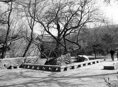 過去在香山一帶流傳的曹公故居小曲是這樣唱的:“門前古槐歪脖樹,小橋流水野芹麻!倍F(xiàn)在的紀(jì)念館門前就屹立著3棵古槐,應(yīng)為元槐,距今已有七百多年了;其中門東邊的一棵是著名的“歪脖槐”。紅學(xué)家吳恩裕先生曾著文:“他(曹公)住的地方在四王府的西邊,地藏口的左邊靠近河的地方,那兒今天還有一棵已二百年的大槐樹!睉(yīng)該說這位紅學(xué)家是調(diào)查得比較仔細(xì)的,可能因他不是研究植物學(xué)的,故樹齡把握得不太準(zhǔn)。據(jù)當(dāng)?shù)氐睦先藗冋f,過去在曹公門前生長著很多野芹菜,曹公經(jīng)常用它給百姓治病,并自己起名為“芹”。紀(jì)念館門前的景物和小曲正相吻合。