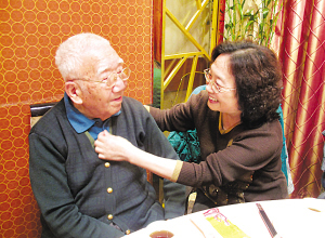 不過,莊夫人“揭發(fā)”道,莊奴也不只是寫情歌,他也有大氣的歌。一說起這,老先生又高興起來,他說,那是臺灣要拍一部電視專題片《詩詞的故鄉(xiāng)》,約他寫主題曲,他寫好了電視片沒拍成,詞卻留下來了,“一瀉千里的詩與詞,詩也美,詞也香……”老先生擊節(jié)吟誦著詞作,豪氣頓生。身邊有佳偶,老先生文思更如泉涌,幾乎是走一路,寫一路。他答應(yīng)記者說,下次來南京,呆的時(shí)間長一點(diǎn),他會專門給南京寫首詞。