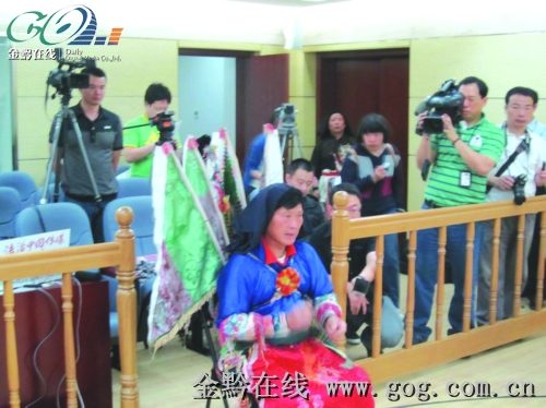 昨日的庭審現(xiàn)場(chǎng),兩位全身披掛地戲服飾的地戲演員詹學(xué)彥、曾玉華作為證人出庭作證。兩人證明了當(dāng)初受《千里走單騎》劇組邀請(qǐng),參加拍攝了“千里走單騎”、“戰(zhàn)潼關(guān)”兩幕安順地戲的事實(shí)。詹學(xué)彥還委曲地說(shuō),影片上映后,他被許多屯堡人罵他“賣(mài)祖宗”。