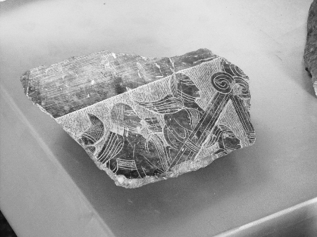 現(xiàn)場(chǎng)專家朱巖石說,這塊畫像石的加工方法和鋪地石類似,而且有勾縫白灰,可能和鋪地石有關(guān)系。還需要進(jìn)一步研究。