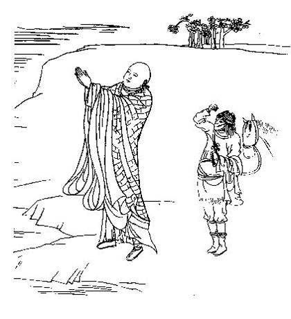 在榆林窟第2窟、第3窟、第29窟及東千佛洞第2窟內(nèi),都繪制了這樣一幅壁畫:一名出家人面對洶涌的河水雙手合十,身后長著猴相的弟子牽著一匹馱經(jīng)老馬,遠處有一片樹林。