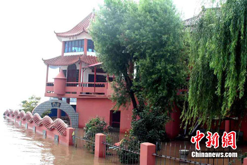 20日,中新社記者來到九江縣江新洲渡口,江邊上的一座剛奠基不到半年的三圣寺已經(jīng)被洪水浸泡,奔涌的長江水正滾滾東逝,江面上穿梭著幾艘航船,渡口邊一艘渡船上走下上百名乘客,秩序井然。