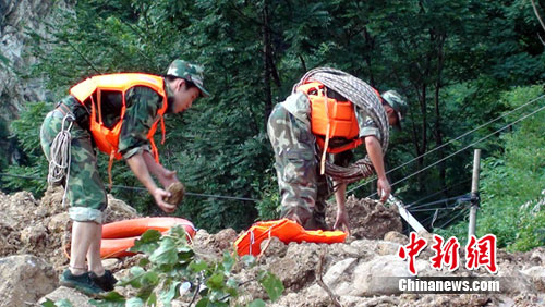 據(jù)介紹,接到搜救命令后,19名官兵迅速挺進(jìn)救援現(xiàn)場,由于受暴雨侵襲,到大竹河鎮(zhèn)臨河村大部分道路交通中斷,通行非常困難,在前往臨河村的途中,險(xiǎn)情錯(cuò)綜復(fù)雜,并不時(shí)還有山石墜落,由于對(duì)當(dāng)?shù)氐匦蔚孛膊皇煜,全體搜救隊(duì)員每前進(jìn)一步都帶著威脅,此路段全程12.8公里,再加上沒有交通工具此行顯得更加艱難,爬山,翻越,走水路渡船,雖然,大家的腳上都磨出泡。在歷時(shí)4小時(shí)后,全體隊(duì)員翻過一個(gè)又一個(gè)滑坡地段,穿越了一個(gè)又一個(gè)亂石集結(jié)的險(xiǎn)灘激流,終于按照上級(jí)規(guī)定的時(shí)間準(zhǔn)時(shí)到達(dá)目的地。