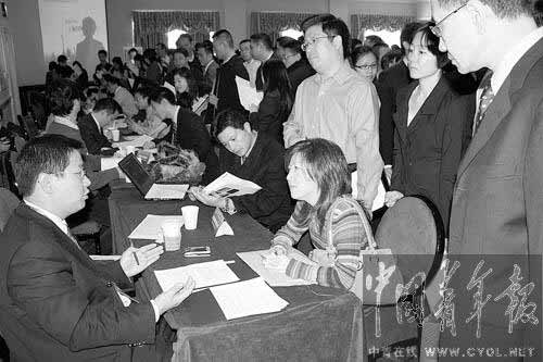 與此同時,中國一些地方政府、金融機構(gòu)、民營企業(yè)紛紛計劃到美國招聘人才。一邊是美國公司裁員不斷,一邊是中國企業(yè)高調(diào)招人,越來越多的金融界華人以及中國留學(xué)生考慮回國發(fā)展。據(jù)不完全統(tǒng)計,在紐約直接從事金融工作的華人將近1萬,目前已有30%的人失業(yè),其中不少人已經(jīng)打算回國。法新社在報道華爾街金融人才愈發(fā)青睞中國的問題時,就選用了“到東方去!”的醒目標(biāo)題。