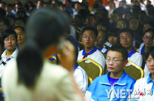 “天佑中華”主題教育活動(dòng)從下午4點(diǎn)30分開始,在簡(jiǎn)單的問候后北京十一學(xué)校教導(dǎo)處陳雪芬副主任向北川中學(xué)校長(zhǎng)劉亞春詢問,“是什么力量讓北川中學(xué)克服如此重重困難?”劉亞春校長(zhǎng)難掩悲痛地說:“其實(shí)作為教師,苦難中首先救助學(xué)生是教師本能的表現(xiàn)。對(duì)于那些罹難的師生來說,他們的生命不是消逝了而是永恒了,幸存者也變得更加堅(jiān)強(qiáng)。在今后的日子里,各方的關(guān)心和關(guān)注以及北川中學(xué)師生堅(jiān)強(qiáng)不屈的意志,都是我們戰(zhàn)勝艱難的最基本動(dòng)力。”話音剛落,北京十一學(xué)校近千名學(xué)生報(bào)以熱烈的掌聲。
