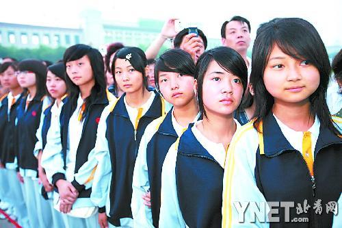 昨天凌晨4點(diǎn)多,天安門(mén)廣場(chǎng)上陸續(xù)來(lái)了四批特殊的客人:首鋼高級(jí)技工學(xué)校、工貿(mào)技師學(xué)院、實(shí)驗(yàn)技工學(xué)校、無(wú)線電動(dòng)力技工學(xué)校四所學(xué)校接收的119名災(zāi)區(qū)技校生不約而同地來(lái)看升旗。與前兩天相比,他們的情緒明顯高漲了許多,互相嬉笑著拍照。之后,人民大會(huì)堂、國(guó)家大劇院、“鳥(niǎo)巢”、水立方、故宮都成為他們的目的地。工貿(mào)技師學(xué)院的23名學(xué)生甚至在國(guó)家大劇院門(mén)前跳起了韻律操,有的還跑起了圈,嘴里念念有詞地用四川話喊著他們的跑操口令。其他參觀者都圍了上來(lái),饒有興味地看著。(解麗)