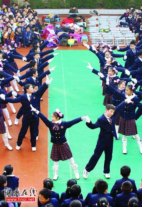 “校園集體舞在長(zhǎng)沙中小學(xué)校還是得到推廣了,現(xiàn)在學(xué)生們基本上都會(huì)跳,今年上半年舉行的校園集體舞比賽,就顯示不少學(xué)校組織得很好,學(xué)生們跳得很好。”說(shuō)起校園集體舞目前有點(diǎn)令人始料未及的現(xiàn)狀,長(zhǎng)沙市教科院教研員周立德一再肯定之前的成績(jī),“這學(xué)期以來(lái)的情況不如以前,是有多方面原因的。我們和一些學(xué)校校長(zhǎng)交流,大家都并不反對(duì),關(guān)鍵在于怎么組織進(jìn)行!