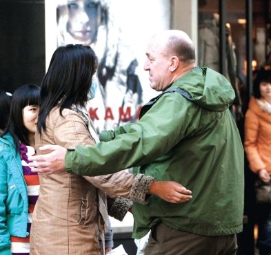 黃坤用英語(yǔ)向一位高大的中年老外發(fā)出了擁抱請(qǐng)求,這位美國(guó)人突然愣了一下。接著,黃坤又向他解釋了一遍。這一次,老外張開(kāi)寬闊的臂膀緊緊地把黃坤擁入懷中,連聲說(shuō):“No Problem!(沒(méi)問(wèn)題)”