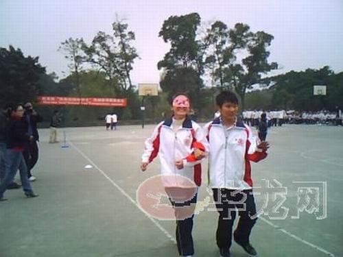 “什么都看不見(jiàn),完全沒(méi)有方向感,心里感到很害怕!痹25米盲人短跑接力賽上,高(一 )17班的周玲同學(xué)剛下場(chǎng)就緊張地對(duì)記者說(shuō)道。因?yàn)閹е壅,整個(gè)世界都是黑暗的,只能在摸索中前進(jìn),最后,在伙伴的帶領(lǐng)下周玲才走到了終點(diǎn)。
