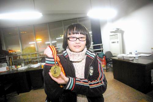 楊柳展示她獲得的金牌!∮浾 張曉 攝