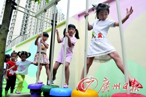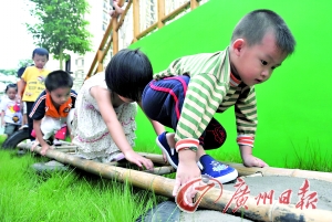 記者在現場見到,與其他幼兒園不同的是,剛開辦的禪城區(qū)天湖酈都幼兒園1700平方米的戶外活動場地上,布滿了“梅花樁”、“吊臂橫桿”、“高空爬網”、“水泥管”、“迷宮”、“碎石路”等各種各樣的設施,儼然一個小型“戶外軍事拓展基地”。