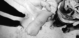 在幼兒園門(mén)口,聽(tīng)說(shuō)記者來(lái)采訪,不斷有家長(zhǎng)帶著孩子圍攏過(guò)來(lái)。小謙的頭頂上被畫(huà)了幾個(gè)圈,他媽媽指著這些圈點(diǎn)告訴記者:“這個(gè)老師太狠心了,連頭上都亂打針!毙≈t的媽媽對(duì)記者說(shuō),他們是今年9月才把孩子送去這個(gè)幼兒園的,之前兒子一直好好的,但近段時(shí)間以來(lái),只要他們每次送孩子上學(xué),娃娃都會(huì)哭著喊著不去幼兒園,而且一提到老師就哭,直到有一天,她問(wèn)小謙為什么不愿意去上學(xué),兒子才說(shuō):“去學(xué)校老師就打針,我不去上學(xué)!