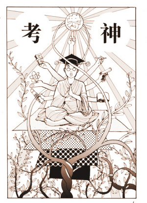 “考神”,全稱(chēng)為“考試必過(guò)神”,原是校內(nèi)網(wǎng)上虛擬人物”。隨著“掛科了沒(méi)?”這句話(huà)成為南京各所高校學(xué)生見(jiàn)面的問(wèn)候語(yǔ),補(bǔ)考前在“考神”公共主頁(yè)上發(fā)帖“拜考神”,也已成為大學(xué)生的一種另類(lèi)時(shí)尚。