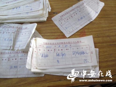 李校長還給記者出示了今年收取260元費用的收據(jù),收據(jù)上居然印著“安徽省臨泉東風(fēng)調(diào)味品有限公司入庫單”的字樣,上面寫著學(xué)生的姓名、班級和所交的260元費用,每一張右下角都是用相同筆跡簽了一個“周”字,據(jù)李校長介紹簽“周”字的人是陳子玉的兒媳婦,她負(fù)責(zé)來學(xué)校收錢。