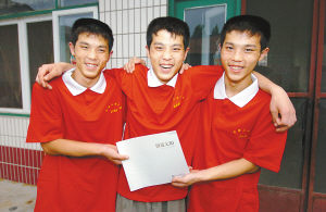 家住山東省高密市柏城鎮(zhèn)小河崖村的三胞胎兄弟趙凌霄、趙凌漢和趙凌云,在今年的高考中分別考出了616分、617分和618分的三連號(hào)成績(jī)。兄弟三人一志愿報(bào)考了中國(guó)石油大學(xué),并有望被錄取。新華社記者 范長(zhǎng)國(guó)攝