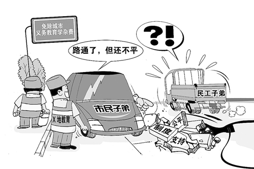 7月30日召開的國(guó)務(wù)院常務(wù)會(huì)議決定,從2008年秋季學(xué)期開始,在全國(guó)范圍內(nèi)全部免除城市義務(wù)教育階段學(xué)生學(xué)雜費(fèi)。會(huì)議提出了四點(diǎn)要求,其中第三點(diǎn)最引人注目:要切實(shí)解決好進(jìn)城務(wù)工人員隨遷子女就學(xué)問題。根據(jù)規(guī)定,此后,符合一定條件的外來(lái)務(wù)工子弟將可以與城市孩子享受同等的教育待遇,這必將進(jìn)一步推動(dòng)城鄉(xiāng)教育公平。(7月31日《人民日?qǐng)?bào)》)