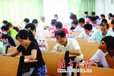 這次筆試,綜合素質(zhì)試卷和案例題都是由中組部考試中心命題,但外語試卷則由廣東省內(nèi)專家出題。一些考生反映“試題難”。也有人認(rèn)為作文題寫“祝酒詞”導(dǎo)向有點(diǎn)偏,“給人感覺當(dāng)官就是應(yīng)酬”。