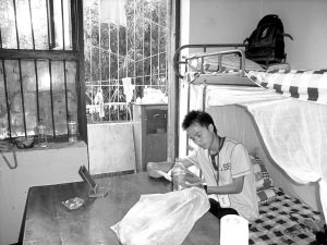 “我們在這里生活無憂,而且每天都還有志愿者和社會各界人士來探望!币覀ケ晦D(zhuǎn)移到成都中醫(yī)藥大學(xué)下汪家拐校區(qū),和小尹同安置在該校區(qū)的還有他學(xué)校的70多名高三同學(xué)。他住在一幢6層的宿舍樓,宿舍內(nèi)窗明幾凈,地面整潔,床鋪全是新的,枕頭也是新的,甚至?xí)疽彩切碌!叭钦渲玫,書本則是志愿者送的”。小尹坐在床邊的桌子旁,復(fù)習(xí)著功課。小尹說,在這里他不僅感受到了溫暖,更可以安靜迎考,他一定要考好,否則對不起幫助他們的人。