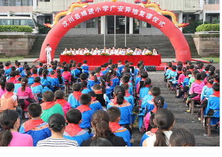 處于5.12汶川大地震震中區(qū)的綿虒小學(xué)在這次地震中所有教學(xué)建筑都受到不同程度損害,9個(gè)班443名師生停課已達(dá)3個(gè)月之久!斑@里的學(xué)習(xí)條件比我們哪里好多了,感謝廣安市區(qū)的叔叔阿姨給我們提供了這么好的學(xué)習(xí)和生活條件,我一定珍惜這來(lái)之不易的學(xué)習(xí)機(jī)會(huì),好好學(xué)習(xí)! 坐在寬敞明亮的教室里,手握語(yǔ)文書(shū),綿虒小學(xué)五年級(jí)學(xué)生陳思雨向記者表達(dá)了自己最真摯的心聲。