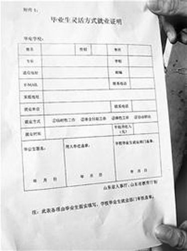 該校機械工程系一名學(xué)生告訴記者:“我們明年7月才畢業(yè),這兩天班主任給我們每人發(fā)放了一張‘畢業(yè)生靈活方式就業(yè)證明’,讓我們自己到校外聯(lián)系單位,并讓用人單位在這張證明上蓋章。班主任老師說了,交不上這份就業(yè)證明,學(xué)校就不給畢業(yè)證。我們現(xiàn)在很為難,因為用人單位的公章不是隨便就給蓋的。”