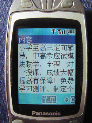 劉女士的孩子在紅橋區(qū)實(shí)驗(yàn)小學(xué)上五年級(jí),她最近經(jīng)常接到提供寒假輔導(dǎo)的短信。記者按照她短信中的號(hào)碼撥通了報(bào)名電話,自稱是某著名培訓(xùn)中心的“張老師”介紹說:“我們能提供小學(xué)一年級(jí)到高三各學(xué)科的定向輔導(dǎo),尤其是針對(duì)中高考的學(xué)生!迸嘤(xùn)地點(diǎn)在河西區(qū)的一棟寫字樓內(nèi),老師在一個(gè)大辦公室分割成的若干格子間內(nèi)對(duì)學(xué)生進(jìn)行一對(duì)一授課,還可以針對(duì)不同孩子制定特殊的輔導(dǎo)方式。