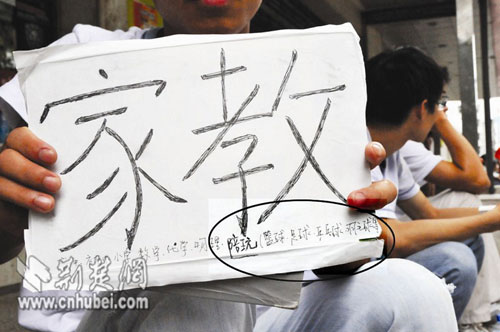 圖為:打出的家教招牌。 記者劉蔚丹 實習(xí)生榮佳穎攝