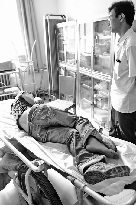 昨日中午12時許,記者在鄭州市第二人民醫(yī)院骨外科見到溫彩霞時,她正獨自躺在病床上輸液。經(jīng)醫(yī)生診斷,溫彩霞腰、胸部位出現(xiàn)兩處骨折,此外,多處粉碎性骨折。
