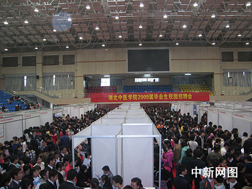 中新網(wǎng)武漢11月22日電 (艾啟平 李飛)為緩解應(yīng)屆畢業(yè)生嚴(yán)峻的就業(yè)形勢(shì),11月22日,由湖北人力資源中心(方陣人力資源集團(tuán))、湖北中醫(yī)學(xué)院聯(lián)合舉辦的免費(fèi)校園招聘會(huì)在該校體育館舉行,來(lái)自湖北省內(nèi)外100家醫(yī)療機(jī)構(gòu)、醫(yī)藥企業(yè)、醫(yī)療器械公司等可為2009屆畢業(yè)生提供近1500個(gè)工作崗位。