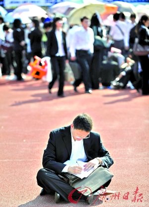 一個學(xué)期的找工“搏殺”后,很多畢業(yè)生談到“求職期待”時,眼睛里夢幻般的光芒已經(jīng)褪去。廣州大學(xué)歷史系的大四畢業(yè)生黃毅江說,最理想的情況是在珠三角地區(qū)簽一所公立高中,最低期望是“回增城的小工廠里做文員”。小黃覺得最重要是先找到工作干起來,一則養(yǎng)活自己、不再向家里伸手,二則可以邊干邊學(xué)、“學(xué)到的都是自己的”。