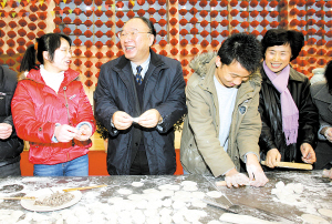 重慶市領(lǐng)導和留校大學生一起包餃子團年(圖)