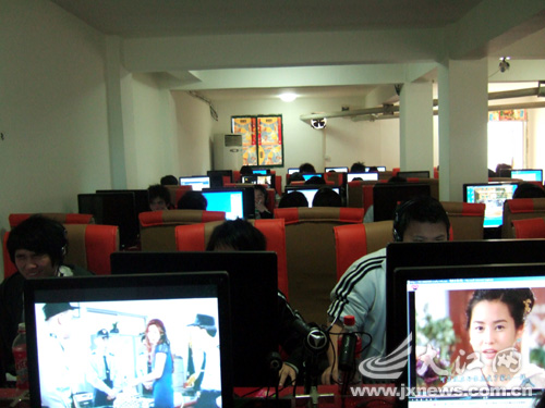 網(wǎng)吧內(nèi)坐滿了人
