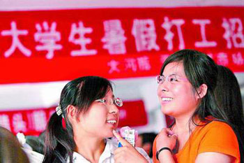 雖然勤工儉學不適用于《勞動合同法》,但不少公司卻很喜歡招用在校學生為他們打工。易博說:“招聘在校大學生作為促銷員,一是因為他們?nèi)巳杭,幾天時間就能招到一二百人;二是在校大學生有熱情,社會經(jīng)驗比較簡單,不會提額外要求給企業(yè)添麻煩!