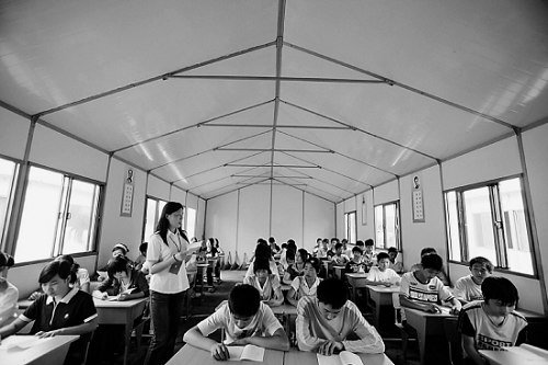 昨天一大早,14歲的王柱良背著書包重新回到了崇州何家中學(xué)的課堂。與其他重災(zāi)區(qū)的受損學(xué)校不同,這所抗震中學(xué)用的不是帳篷,而是花了一天時(shí)間搭建起來的彩鋼復(fù)合夾心板房子。