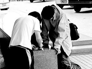 記者以買證為由,與賣證者小劉見了面。小劉一身學(xué)生打扮,看上去有20歲左右。他出示的本人學(xué)生證上姓名是“劉政”,學(xué)校為首都經(jīng)濟(jì)貿(mào)易大學(xué),系別為“工商管理”。他“指導(dǎo)”記者在一本空白的學(xué)生證上填寫資料,“除了姓名和身份證號(hào),學(xué)號(hào)、系別等都按照要求填寫,或按照我的證寫!贝浾咛顚懲戤,他拿出“學(xué)校”的鋼印機(jī),在記者貼好的照片上壓蓋(見圖)。至此,一張“首經(jīng)貿(mào)學(xué)生證”新鮮出爐——整個(gè)過程不到10分鐘。